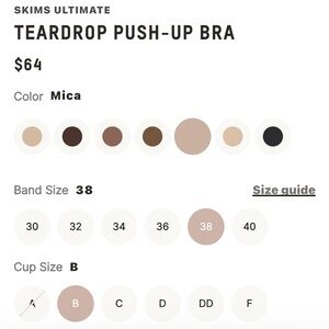 SKIMS Teardrop Push-Up Bra - Mica 38B