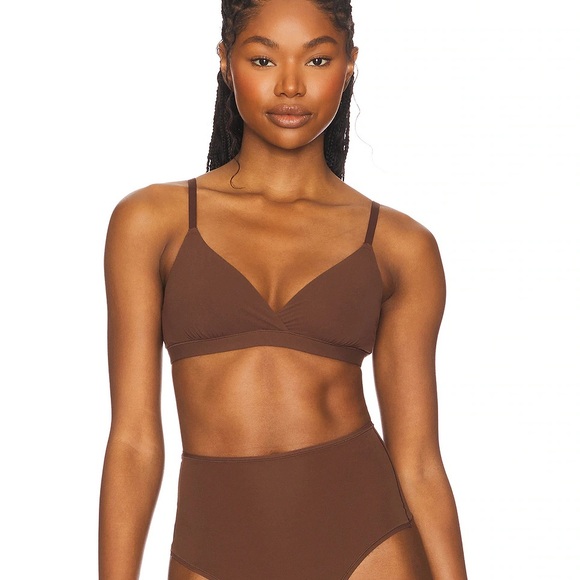 Soft and comfortable SKIMS triangle bralette in a rich brown shade — perfect everyday essential.