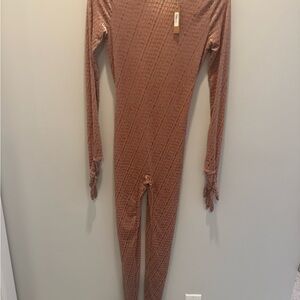 SKIMS VELVET CATSUIT JUMPSUIT WITH STIRRUPS IN SIENNA Size S Brand New