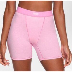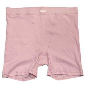 SKIMS Womens High Waisted Boxer Shorts Light Pink Sz 2X Ribbed Cotton
