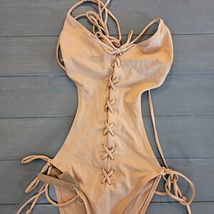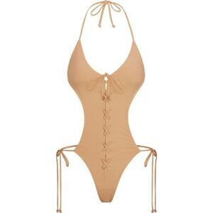 SKIMS Women's Ochre Signature Swim Lace Up Halter Monokini Size Large