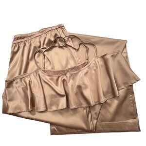 SKIMS Woven Shine Cami + Lounge Pants Set Pink Sand Womens 2X