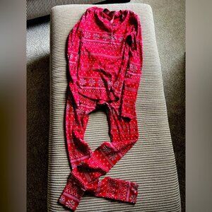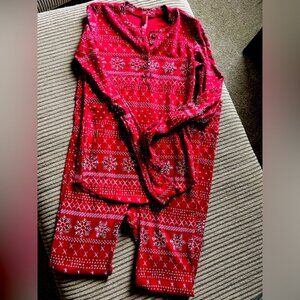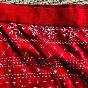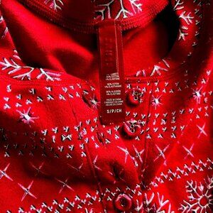 Worn once SKIMS red snowflake holiday pajamas size small, small snag on waist band but in good condition