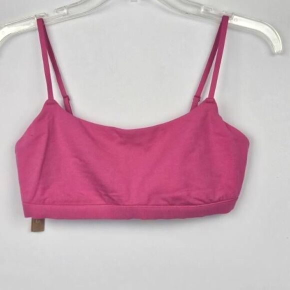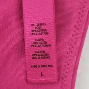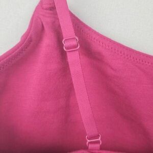 Very soft and comfortable. Cotton, elastane fabric. Adjustable straps, lined. So pretty in this Raspberry color. Size L.