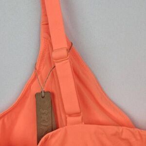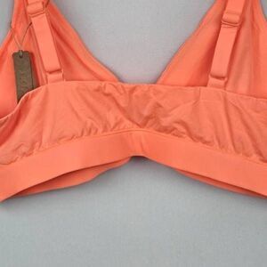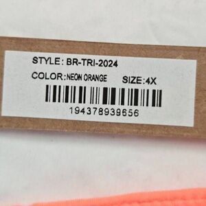 So cute and comfortable! Pull on style with adjustable straps. Soft cups cross in front. Polyamide, elastane fabric, fully lined. NEON orange color, size 4x.