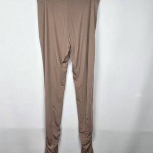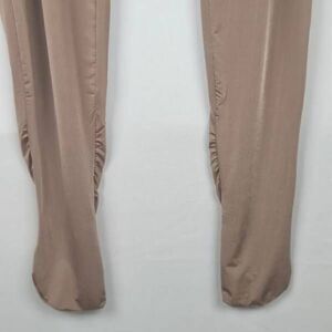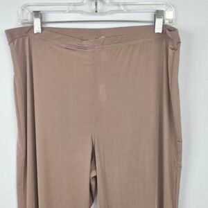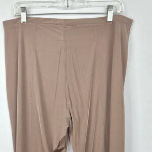 Silky soft and very comfortable. Pull on style with elasticized waistband, seamed leg backs and gathering at leg bottoms for fetch. Fabric is nylon, spandex. Sienna color, size 3x.