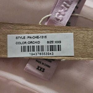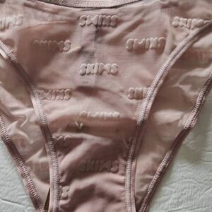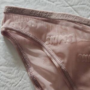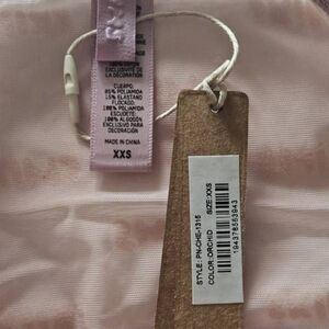 Pretty, soft and comfortable. Bikini cut panty with logo embossed all over. Orchid color, size xxs. Polymide elastane fabric with cotton lined gusset.