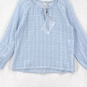 SKIN WORLDWIDE Textured Cotton Gauze Pajama Top Womens 2 Medium Light Blue NEW