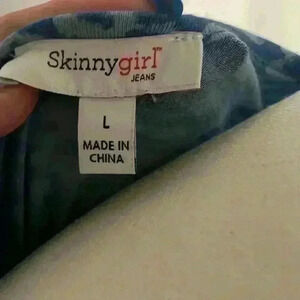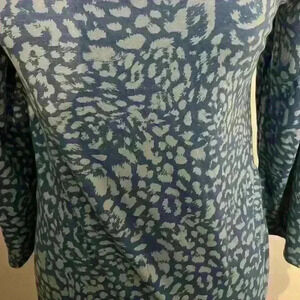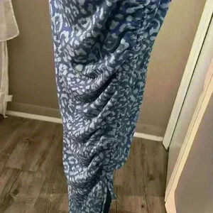 SKINNYGIRL Jeans Side Ruched Midi Pencil Dress blue leopard Sz large