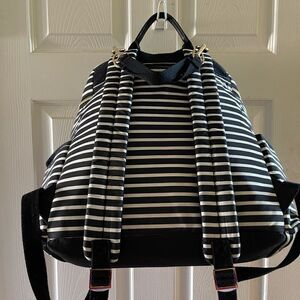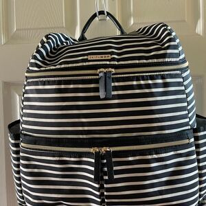 SKIP HOP FLATIRON DIAPER BACKPACK BLACK-WHITE STRIPES gold tone hardwares.