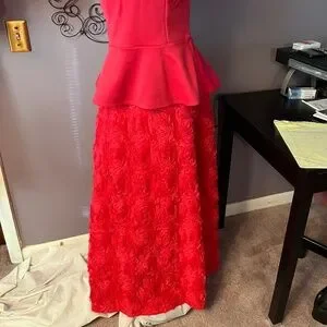 This field of flowers graces the entire skirt with a 31" waist and 41.5" in length. Banded waist. This has been modified from a formal and paired with the top shown. It is a coral pink color and this top works with it. Top is optional if you want it, I'll throw it in. Perfect for the coming Valentine holiday!