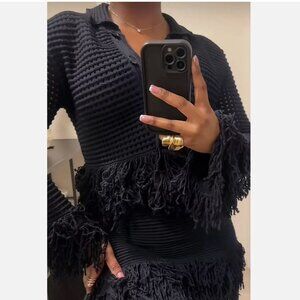 SKIRT ONLY - ZARA WOMAN NWT NAVY BLUE FRINGE CHECK KNIT SKIRT M NWT