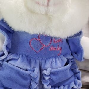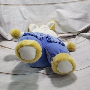 SKM Tan White Bunny Rabbit Velour Blue Overalls Plush Stuffed Toy 12 Inch
