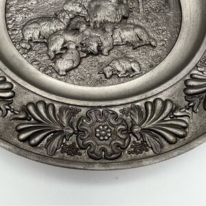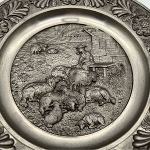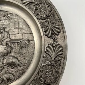 SKS Zinn 95% Pewter Decorative Round Wall Plate Decor Sheepherder West Germany
