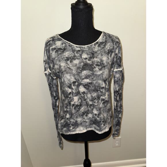 SKULL CASHMERE Women’s 100% Cashmere Skull Graphic Sweater Gray Small Goth Emo