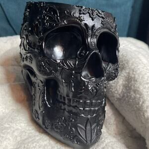 This Halloween-themed item is sure to add a spooky touch to your decorations. This versatile item can be used as a makeup holder, pen holder, or plant holder. The black color adds to the eerie ambiance and is perfect for Halloween enthusiasts. Made with high-quality materials, this item is brand new and ready to be a part of your collection.