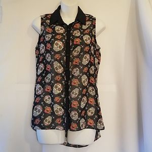 SKULLS AND ROSES SLEEVELESS GOTHIC TOP