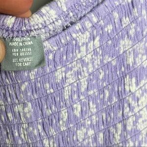 Sky And Sparrow Smocked Puff Sleeve Romper. Flowy romper with allover ditsy floral print. Elastic square neck. Smocked bust. Short puff sleeves with elastic cuffs. Side pockets. Breezy shorts. Approx. inseam: 2". 100% rayon. Machine wash.