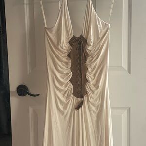 SKY Brand Halter Gown Dramatic Open Back Rayon Spandex Blend Pocahontas Large