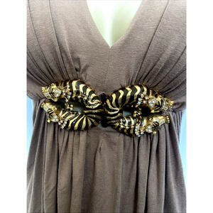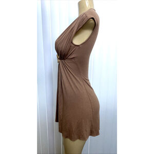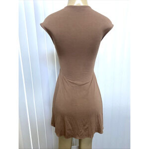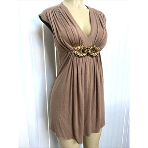 SKY Dress V neck Cap sleeve Jersey Mini Flare Tunic Beige Brown Tiger Gold XS