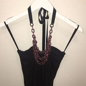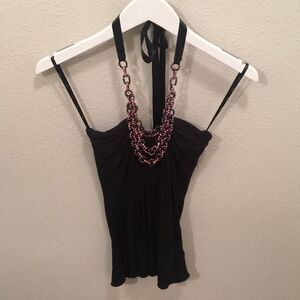 SKY Halter Top Alysson Jeweled Pink Gemstone Necklace ribbon size XS
