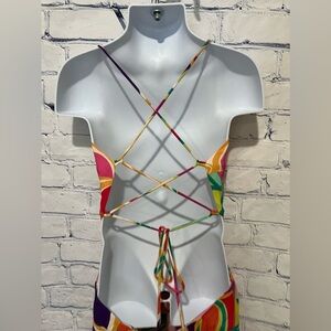 SKY TO MOON Colorful RETRO FLORAL Crepe DRAPE NECK Sundress Dress Girls large
