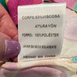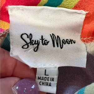 Get ready for a colorful and retro-inspired summer with this beautiful SKY TO MOON scrappy sundress! Perfect for girls in size L, this dress features a geometric pattern in multicolor and is made of a comfortable blend of rayon and viscose materials. The sleeveless design and midi length make it perfect for warm weather, while the brand name adds a touch of sky-high quality.
