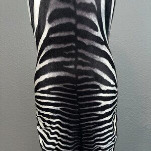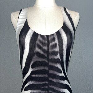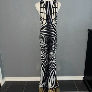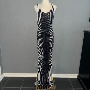 SKY ZEBRA SEXY BODYCON MAXI DRESS WITH LEATHER STRAPY CAGE RACER BACK - EUC - S