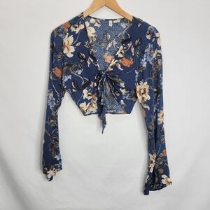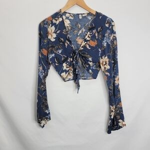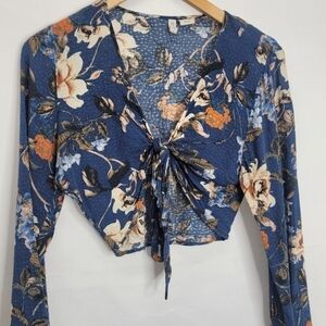 SKY and Sparrow Floral Front Tie Crop Long Sleeve