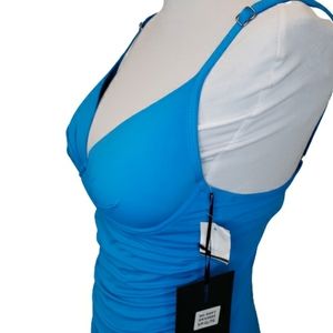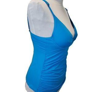 SKYE Tankini Shirred Swimsuit Top Turquoise Blue Size Small