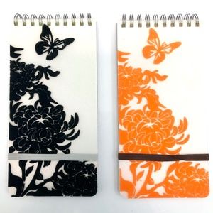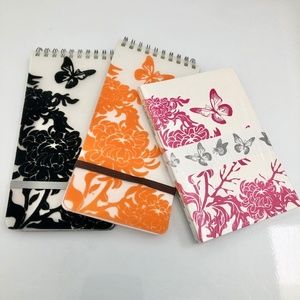 SKYHIGH Set of 5 Mini Journals + Spiral Bound Note Pads Flocked Floral Butterflies in Black, Orange & Pink NEW!