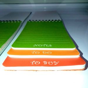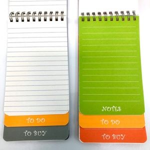 For sale is a Set of 5 Mini Journals + Spiral Bound Note Pads in Black, Orange & Pink. Three (3) are Mini Journals in Composition Book style in sealed packaging. Two (2) are Flocked Graduated Spiral Bound Note Pads with designs of Chrysanthemum Flowers and Butterflies in Black and Orange.