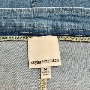 SKYLAR MADISON, MEDIUM WASH, STRETCHY DENIM, FRAYED BOTTOM SUMMER TOP. SIZE M
