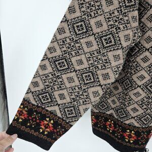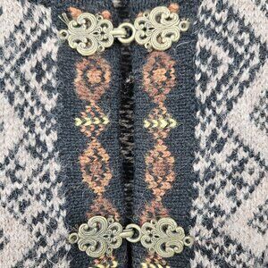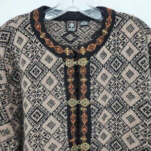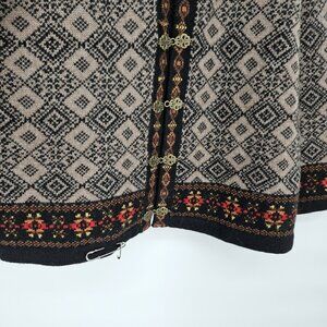 SKYR Sweater Womens 2X Black Beige Wool Nordic Cardigan Hook Closure Floral Knit