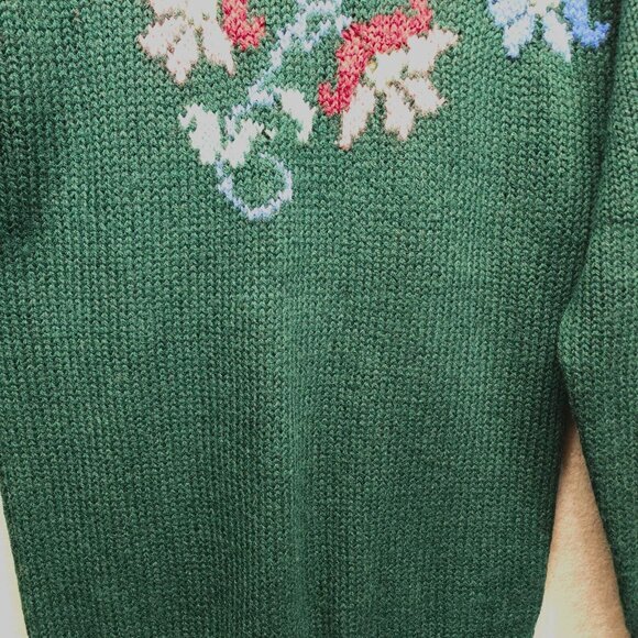 SKYR Vintage 80s Sweater Small Floral Knit Wool Green Novelty Kitchsy