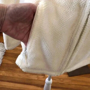 SKYR full zip white fleece with zippered side pockets. Inside pulls to cinch in waist.
