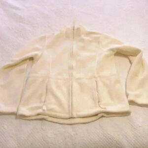 SKYR full zip white fleece with zippered side pockets. Size M