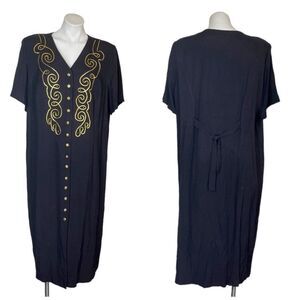 SL FASHIONS Vintage Black Dress Gold Embellished Plus Size 22W VINTAGE Made in USA