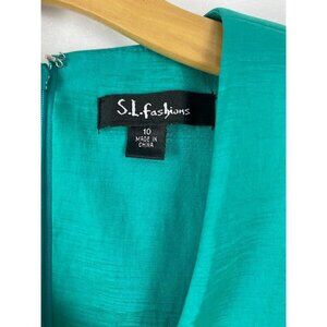 S.L. Fashion Jade Taffetta Formal Cocktail Shift Dress Flower Accent New Sz.10