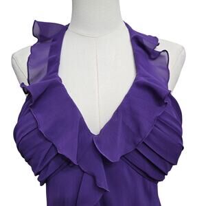 SL Fashion Vtg Y2K Romantic Whimsigoth Sheer Chiffon Ruffle Midi Halter Dress 12