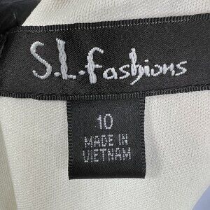 SL Fashions Womens Size 10 Back Zip Sleeveless Floral Chiffon Overlay Stretchy Dress Satin Cowlneck Bloomcore Garden Party Modest Wedding Guest