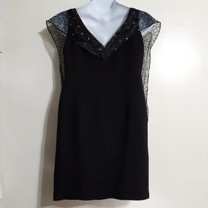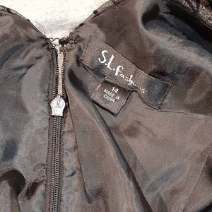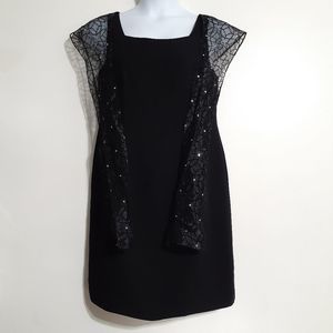GUC black lined mini formal dress with attached sparkly scarf/tie in size 14 by SL Fashions (Macy's)