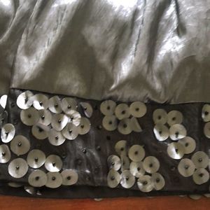 Taffeta like skirt with beautiful detailing. There is 5 inches of black netting with sequins and taffeta circles that are beaded around the bottom of the skirt