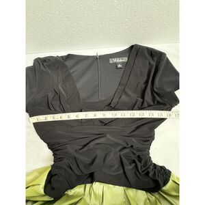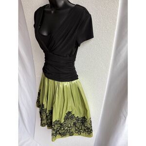 SL Fashions Draped Flare Satin Charmuese Dress Party Formal Black Green Size 6
