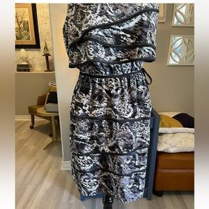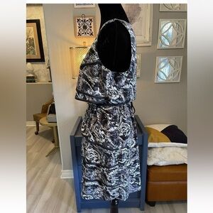 SL Fashions Dress Sz 10 Black Ivory Womens Tiered Sleeveless Party Office Work