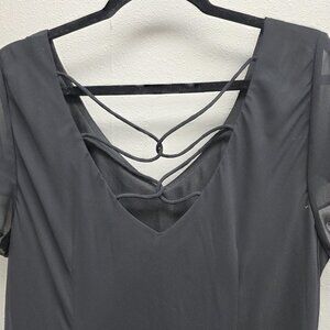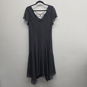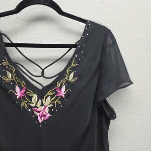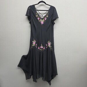 SL Fashions Dress Womens 18 Black Chiffon Embroidered Floral Handkerchief Hem