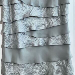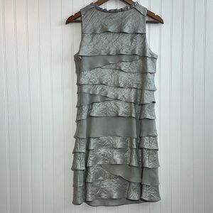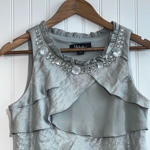 SL Fashions Dress Women’s 8 Petite Silver Gray Embellished Crew Neck Sleeveless
