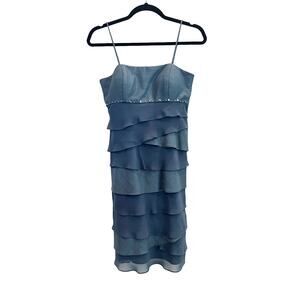 SL Fashions Formal DRESS 2+ CROP JACKET 6P Blue Tiered Beaded Ruffled Mob Wife