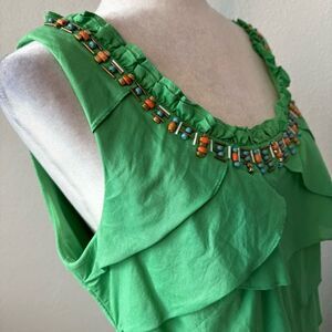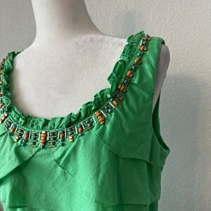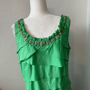 SL Fashions Green Sleeveless Ruffled Dress Beaded SZ 12