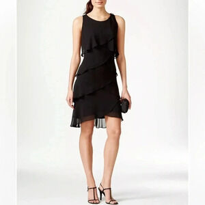 This dress was worn once to a special event and has mermaid tiered fabric all around. It also features blingy embellishment at the shoulder for a pop of interest.
